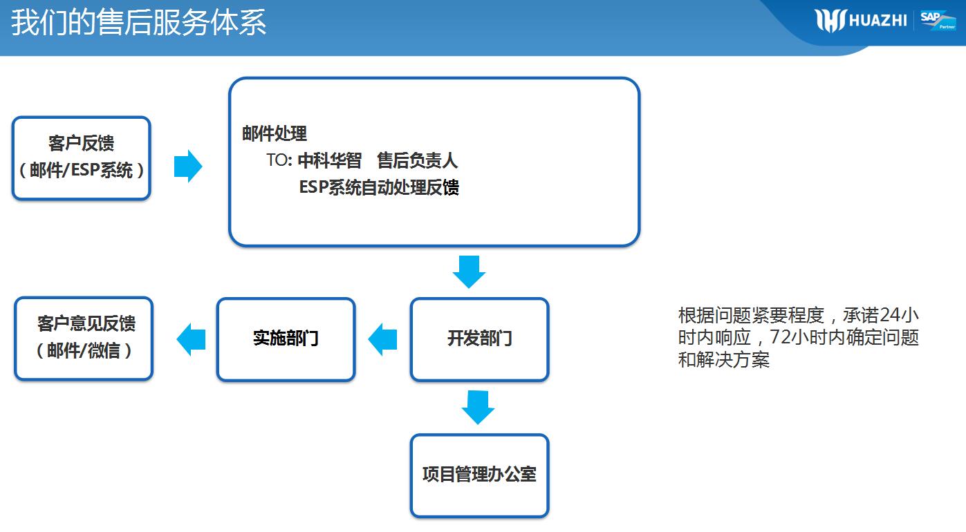由SAP公司和青島中科華智共同為客戶提供售后服務,青島中科華智提供日常維護和快速的本地服務,SAP公司